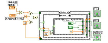 應(yīng)用LABVIEW[5-6]軟件來模擬發(fā)電機(jī)并列的過程,編制程序來完成對發(fā)電機(jī)并列前三個條件的判斷,同時模擬顯示出發(fā)電機(jī)并列的過程,使其能方便、直觀的模擬演示。