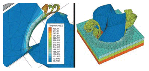 切削加工仿真技術是研究解析切削加工過程中的物理現(xiàn)象,通過數(shù)值仿真得到切削過程中的切削力、應變、應變率、切屑、刀具溫度等數(shù)值,對切削參數(shù)及刀具進行DOE研究和刀具磨損研究,以及基于切削力、溫度等仿真數(shù)值對NC程序進行優(yōu)化。