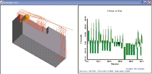 Production Module軟件是一個工藝分析軟件。通過對工件、刀具、材料數(shù)據(jù)及NC程序的綜合分析,可以得到整個加工過程中的切削力、溫度等數(shù)據(jù)。然后,通過優(yōu)化NC程序中的進給及切削速度來優(yōu)化加工過程中的切削力、溫度等參數(shù)。如圖3所示。