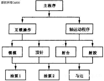 控制系統(tǒng)硬件由上、下位機(jī)組成。上位機(jī)包括工控機(jī)、面板及鍵盤;下位機(jī)包括PCC 控制器及擴(kuò)展模塊。上位機(jī)采用帶486DX2CPU 的IPC2001 安裝了B&R Automation Runime V2.60操作系統(tǒng),26.4cm (10.4 時(shí))TFT 真彩屏,中英文操作界面,面板附帶注塑機(jī)專用30 鍵小鍵盤;下位機(jī)采用高性能可編程計(jì)算機(jī)控制器B&R PCC 一2003 系列CP476 ,該P(yáng)CC 除了帶CPU 外還帶有獨(dú)立的TPU , 用于處理高速輸人/輸出(I/O)信號,擴(kuò)展模塊DM465,DO435 ,旋人式模塊位移采集AI294 、壓力采集AI351、溫度采集AT664 和高速計(jì)數(shù)模塊AIl38 。上、下位機(jī)之間的通訊采用CAN 總線或者RS232 總線。該控制系統(tǒng)在人機(jī)界面上可對全線集中監(jiān)控,必要時(shí)可以外接moderm 實(shí)現(xiàn)遠(yuǎn)程監(jiān)控;具備I / 0 口、加熱和壓力狀態(tài)顯示;自動故障報(bào)警與隨機(jī)幫助功能。