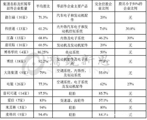 零部件企業(yè)自身的問(wèn)題主要表現(xiàn)在質(zhì)量不穩(wěn)定、供貨不及時(shí)技術(shù)落后以及缺乏應(yīng)對(duì)危機(jī)的經(jīng)驗(yàn)四個(gè)方面。這導(dǎo)致了其市場(chǎng)競(jìng)爭(zhēng)力和適應(yīng)能力不強(qiáng),只能任人欺凌。政府的問(wèn)題主要表現(xiàn)在政策的偏失和股比限制的放開(kāi)兩個(gè)方面。具體股權(quán)比例分析,如下表所示。強(qiáng)大的外資在幾乎沒(méi)有任何阻攔的情況下進(jìn)入我國(guó)的零部件市場(chǎng),而當(dāng)時(shí)國(guó)內(nèi)的零部件企業(yè)的實(shí)力是相當(dāng)弱小,完全無(wú)力與之抗衡。結(jié)果短短三十年時(shí)間,外資在國(guó)內(nèi)零部件行業(yè)形成了的絕對(duì)控股地位。這宛如一座大山,將國(guó)內(nèi)的零部件企業(yè)牢牢的壓在了市場(chǎng)的最底層。這也是導(dǎo)致零部件與整車行業(yè)相比,發(fā)展畸形的一個(gè)深層次的因素。而上下游企業(yè)如上游的鋼廠和下游的主機(jī)廠,憑借自己的壟斷和強(qiáng)勢(shì),擠壓零部件企業(yè)的利潤(rùn)空間,使得零部件企業(yè)難以生存、成長(zhǎng)。