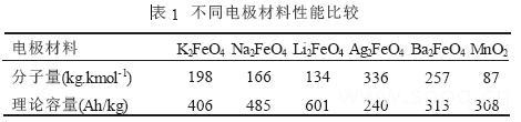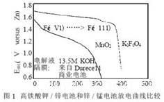 高鐵作為電池的正極材料時(shí), 該電極反應(yīng)為三電子反應(yīng), 電池的電勢(shì)以及能量都比傳統(tǒng)的鋅錳電池高。而且這種材料價(jià)格低廉對(duì)環(huán)境無(wú)污染, 因此受到電化學(xué)界的廣泛注意。