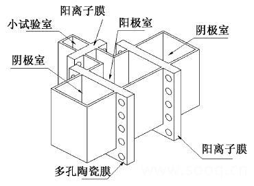 電解2電滲法合成K2FeO4 的電解槽結(jié)構(gòu)示意