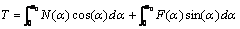 在壓輥與物料接觸的任意點A,其受力如圖4所示,因擠壓物料而收到物料施加給壓輥的反作用力N,N大小隨 變化而變化,但總是沿半徑指向圓心方向;壓輥與物料之間還可能存在摩擦力F,F(xiàn)必定沿切線方向,但指向有待討論。