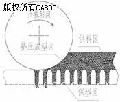 ?。?)由運動分析知,在滑轉(zhuǎn)滾動區(qū),壓輥產(chǎn)生超前性滑動,因此對平模徑向上單位長度的物料而言,在壓輥上的擠壓行程增加,這相當(dāng)于在豎直方向增長了物料的預(yù)壓縮行程。在滑移滾動區(qū),壓輥產(chǎn)生滯后性滑動,對于平模徑向上單位長度的物料,在平模上的擠壓行程增加,相當(dāng)于在水平方向上增長了預(yù)壓縮行程。這就能解釋為什么環(huán)模制粒機(jī)和平模制粒機(jī)加工相同原料、相同規(guī)格的產(chǎn)品時,平模機(jī)的模板厚度遠(yuǎn)薄于環(huán)模厚度:盡管二者都是模板擠壓制粒,但平模機(jī)的兩種滑動作用相當(dāng)于增加了物料的壓縮行程。