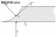 明確了壓輥的受力情況,就可以分析物料受力,物料受力情況如圖5所示,在磨輥擠壓物料的任意一點B,物料受壓輥對其施加的力 與 ,分別為 和 的反作用力。在與平模接觸的平面,物料受到水平方向上的摩擦力S和鉛直方向上的支撐力T。則物料受力的平衡方程為: