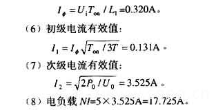 (7)初級(jí)電流有效值:由于初級(jí)電流波形為鋸齒波,故
