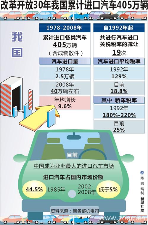 這位負(fù)責(zé)人表示,自1992年起,我國共進(jìn)行了19次汽車進(jìn)口關(guān)稅稅率的減讓,汽車進(jìn)口平均稅率從1992年的129%下降到目前的18.8%,其中轎車稅率從1992年的180%—220%降至目前的25%。同時取消了許多非關(guān)稅措施。目前中國進(jìn)口汽車市場已經(jīng)是全球最開放的市場之一,進(jìn)口汽車規(guī)模超過日本,成為亞洲最大的進(jìn)口汽車市場。自2001年底加入世貿(mào)組織以來,國內(nèi)汽車產(chǎn)業(yè)迅速發(fā)展,國產(chǎn)汽車數(shù)量和質(zhì)量大幅提高,進(jìn)口汽車比例不斷下降。1985年進(jìn)口汽車占國內(nèi)市場份額曾高達(dá)44.5%,2002年至2008年,進(jìn)口汽車占國內(nèi)汽車市場的份額低于5%。