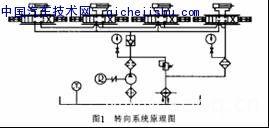 工作原理如下:當(dāng)方向盤發(fā)出轉(zhuǎn)向指令后,由控制器經(jīng)過計(jì)算、分析,向流量控制伺服閥發(fā)出信息,控制閥的開度。同時(shí),由液壓泵向系統(tǒng)供油,通過流量控制伺服閥來控制各個(gè)轉(zhuǎn)向油缸的流量和壓力,從而控制各個(gè)轉(zhuǎn)向輪的偏轉(zhuǎn)角度,各個(gè)轉(zhuǎn)向油缸的壓力可由對(duì)應(yīng)的溢流閥調(diào)定,并通過壓力表顯示出來。此轉(zhuǎn)向系統(tǒng)采用并聯(lián)連接,4個(gè)輪能獨(dú)立轉(zhuǎn)向,互不干擾。
