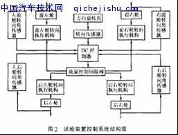 該試驗(yàn)平臺(tái)是一套數(shù)字式全輪轉(zhuǎn)向電液控制系統(tǒng),將電子技術(shù)、液壓技術(shù)和計(jì)算機(jī)技術(shù)有機(jī)結(jié)合,實(shí)現(xiàn)了轉(zhuǎn)向控制的智能化、自動(dòng)化及比較高的安全性和可靠性[3-4]。具有機(jī)電一體化新技術(shù)特征,具體體現(xiàn)在以下幾個(gè)方面: