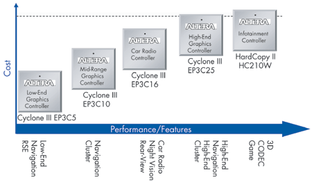 汽車系統(tǒng)圖像控制器應(yīng)用就是FPGA優(yōu)于傳統(tǒng)控制器的一個(gè)例子。盡管汽車市場(chǎng)需要低成本FPGA來實(shí)現(xiàn)圖像等各種功能,但要采用大量的芯片,因此,在可編程器件中實(shí)現(xiàn)復(fù)雜功能的成本太高。