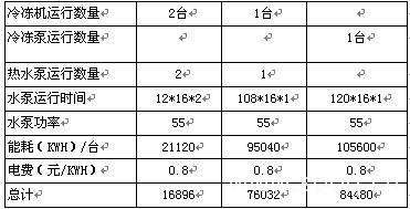 原水泵在制熱的120天時(shí)間里的電耗和運(yùn)行費(fèi)用如下: