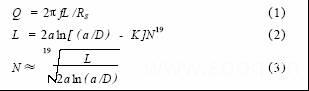 式中f為信號(hào)頻率;RS為等效電阻;D為天線線圈的周長(zhǎng);a為天線線圈的線徑;N為天線線圈的匝數(shù);K為天線線圈的幾何常數(shù),環(huán)形天線時(shí)K=1.01;方形天線時(shí)K=1.47。
