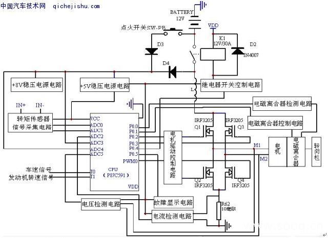 轉(zhuǎn)向系統(tǒng)作為汽車的一個(gè)重要組成部分,其性能的好壞將直接影響到汽車的轉(zhuǎn)向特性、穩(wěn)定性和行駛安全性。實(shí)踐證明電動(dòng)助力轉(zhuǎn)向系統(tǒng)(EPS)具有節(jié)能、成本低和便于控制,易于裝車,提高操縱穩(wěn)定性和輕便性以及符合機(jī)電一體化的要求等優(yōu)點(diǎn),正迎合了時(shí)代的要求。自從1988年EPS在日本商業(yè)化以來,相繼得到了國外各大汽車企業(yè)的大力開發(fā)和廣泛應(yīng)用,不僅用于微型汽車和小型汽車,還廣泛應(yīng)用于輕型汽車及普通型轎車上。國內(nèi)近幾年也得到了相當(dāng)?shù)闹匾暎灿幸恍┸囕v(如昌河北斗星轎車)安裝了進(jìn)口EPS,但還沒有自主知識(shí)產(chǎn)權(quán)的EPS進(jìn)入市場(chǎng),從幾家研發(fā)的產(chǎn)品看出,這其中的因素有很多,特別是車輛在行駛中系統(tǒng)的故障在線監(jiān)測(cè)、故障自診斷和安全防范,以及EPS裝車后的行車安全性等方面還不能很好的得到保證。
