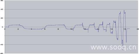 所有動(dòng)力轉(zhuǎn)向系統(tǒng)受限于能提供的轉(zhuǎn)向扭矩量,液壓動(dòng)力轉(zhuǎn)向系統(tǒng)也受限于轉(zhuǎn)向泵的最大輸出流量,因此,如果駕駛員試圖在緊急狀態(tài)下突然轉(zhuǎn)向,或者無(wú)足夠的可用流體,駕駛員將會(huì)需要很大的力量才能完成轉(zhuǎn)向。在一些情形下,轉(zhuǎn)向軟管中的降噪設(shè)備也會(huì)產(chǎn)生液壓流動(dòng)的限制。該試驗(yàn)是用于探測(cè)轉(zhuǎn)向輸出不再跟隨輸入的臨界點(diǎn)。將梯形位移波形以不斷增加的頻率加載到方向盤上,這樣就會(huì)得到一個(gè)速度隨頻率增加而遞進(jìn)的步進(jìn)波形,直到液壓系統(tǒng)不能再提供足夠的液流。