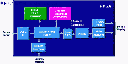 該參考設(shè)計(jì)在Altera Cyclone? FPGA中實(shí)現(xiàn)了一個(gè)視頻輸入模塊和LCD圖形控制器,展示了汽車市場需要的低成本應(yīng)用中,FPGA所具有的強(qiáng)大功能和靈活性。參考設(shè)計(jì)運(yùn)行在Altera Nios II嵌入式處理器開發(fā)板上,并加入了用于實(shí)現(xiàn)相機(jī)/視頻輸入、輸出顯示驅(qū)動(dòng)電路的模塊。
