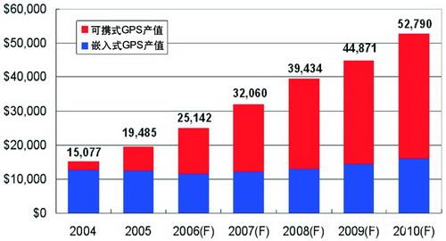 圖3 2004年至2010年車用GPS產(chǎn)值預(yù)估