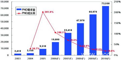 圖8 2003~2010年P(guān)ND出貨量及成長率