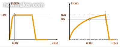 另外,從兩種焊鉗的時間壓力曲線(見圖3)比較中可以看出:電極壓力由0升高到100%焊接所需壓力值,伺服驅(qū)動系統(tǒng)比汽缸驅(qū)動系統(tǒng)快5倍。設(shè)置好的壓力值在焊接過程中不再變化,從而保證很高的焊接質(zhì)量。