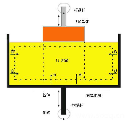在SiC結(jié)晶過(guò)程中,除了滿足溫度和真空度的條件外,另外還要保證籽晶和坩堝之間有相對(duì)的旋轉(zhuǎn)和拉伸運(yùn)動(dòng),而且要?jiǎng)蛩龠\(yùn)動(dòng),否則晶體質(zhì)地滿足不了要求。晶體生長(zhǎng)過(guò)程見圖-2,籽晶桿與坩堝桿反向運(yùn)動(dòng),同時(shí)坩堝桿旋轉(zhuǎn)。