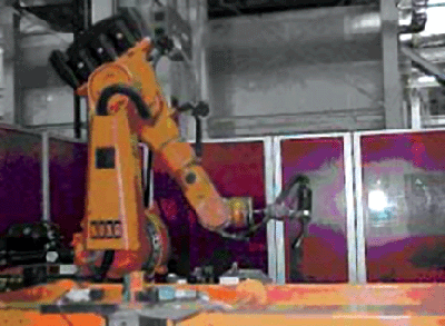 由機器人操縱各種點焊焊槍,實施點焊焊接。機器人可以操縱重達150kg的大型焊鉗對地板等零件進行點焊,也可以利用微型焊鉗對車身總裝如側(cè)圍和后輪罩連接處等空間小而且位置復(fù)雜的焊點進行焊接。通過切換系統(tǒng)可以更換焊槍,進行各種位置的點焊。焊點的質(zhì)量高且穩(wěn)定。焊接速度快,簡單位置的焊接速度一般可達2~3s,復(fù)雜位置的焊接速度可達3~4s。在上海帕薩特和POLO車的制造中,采用了KUKA公司的機器人。