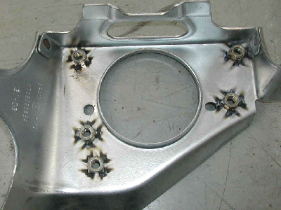 通常除了動力總成與車身采用螺栓機械連接以外,電池固定塊、安全帶固定塊、油箱固定塊等也采用相同的連接方式。為了保證足夠的連接強度,一般都采用凸焊的方法將螺栓連接的螺母端固定在白車身上。