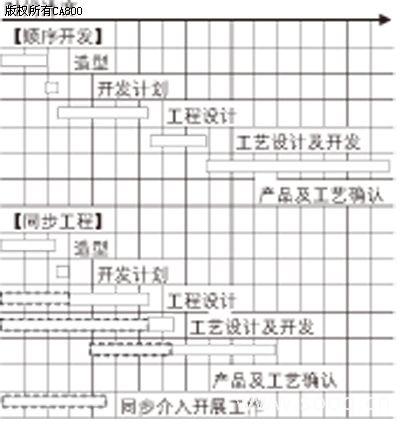 圖1 順序開發(fā)與同步工程時間進度的比較