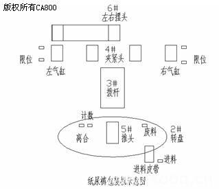 尿褲生產(chǎn)線以一定的速度把生產(chǎn)出來的尿褲輸送出來(速度從1片/分鐘~360片/分鐘)。尿褲包裝機(jī)從接收尿褲開始,到把尿褲按要求的每包數(shù)量一包一包放入包中。首先轉(zhuǎn)盤接料處有個開關(guān),一個尿褲來后,轉(zhuǎn)盤的葉片擺一次,尿褲不斷進(jìn)來。在轉(zhuǎn)盤的另一側(cè)有兩個開關(guān),一個檢測葉片,一個檢測是否缺料。撥桿把推出來的尿褲送到夾頭處,夾頭會把一包數(shù)量的尿褲夾緊,撥桿會繼續(xù)把尿褲往前推到左右擺,然后氣缸會把一包數(shù)量的尿褲推到包裝袋中。