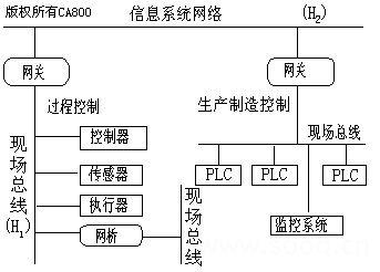 1998年之前,IEC/SC65C只推薦一種類型的現(xiàn)場(chǎng)總線,該總線主要采納Foundation Fieldbus總線和WorldFIP總線基本技術(shù),并嚴(yán)格按照IEC定義制定現(xiàn)場(chǎng)總線標(biāo)準(zhǔn),由于各種原因,經(jīng)過多輪投票未獲通過,只能按規(guī)定成為技術(shù)報(bào)告TS61158,以此為基礎(chǔ)形成了現(xiàn)在的Type1現(xiàn)場(chǎng)總線。國(guó)際電工委員會(huì)推薦的通用現(xiàn)場(chǎng)總線網(wǎng)絡(luò)結(jié)構(gòu)如圖1所示,從圖中可以看出現(xiàn)場(chǎng)總線系統(tǒng)可以支持各種工業(yè)領(lǐng)域的信息處理、監(jiān)視和控制系統(tǒng),用于過程控制傳感器、執(zhí)行器和本地控制器之間的低級(jí)通信,可以與工廠自動(dòng)化的PLC實(shí)現(xiàn)互連。在這里,H1現(xiàn)場(chǎng)總線主要用于現(xiàn)場(chǎng)級(jí),其速率為31.25Kbps,負(fù)責(zé)兩線制向現(xiàn)場(chǎng)儀表供電,并能支持帶總線供電設(shè)備的本質(zhì)安全;H2現(xiàn)場(chǎng)總線主要面向過程控制級(jí)、監(jiān)控管理級(jí)和高速工廠自動(dòng)化的應(yīng)用,其速率為1Mbps,2.5Mbps和100Mbps。