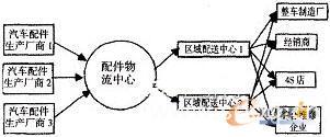 隨著我國物流業(yè)的不斷發(fā)展,物流企業(yè)的服務(wù)能力不斷提升,在原有的配件物流市場供應(yīng)體系框架下,建立統(tǒng)一的專業(yè)化物流配送網(wǎng)絡(luò),并借助先進的信息技術(shù)手段進行資源的有機整合,實現(xiàn)信息的共享應(yīng)是一個基本策略。圖1所示為零配件物流運營基本模式。配件物流中心是一個綜合協(xié)調(diào)中心,它整合多個配件生產(chǎn)廠家的產(chǎn)品資源,通過區(qū)域配送中心向用戶(即整車生產(chǎn)廠、4s店、經(jīng)銷商及綜合維修企業(yè))進行配送業(yè)務(wù),這樣形成一個以物流中心為核心的供應(yīng)鏈,供應(yīng)鏈上的各節(jié)點企業(yè)以信息共享為基礎(chǔ),建立相互協(xié)調(diào)機制和戰(zhàn)略聯(lián)盟伙伴關(guān)系,在滿足高效客戶反映(簡稱ECR)的前提下,降低物流成本,從而達到供應(yīng)鏈各方均受益的理想目的。