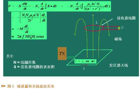 圖6所示為一個磁通量和天線感應電壓關系的公式,這里主要是說明在判斷感應電壓的時候看到很多的因素:比如線圈的匝數、接觸器線圈表面積、頻率、接收電線和發(fā)送天線的角度都會影響到天線感應的電壓。
