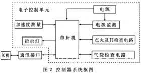 電子控制單元是整個(gè)控制系統(tǒng)的重要硬件,負(fù)責(zé)系統(tǒng)的管理、電源、加速度測(cè)量、氣袋點(diǎn)火驅(qū)動(dòng)、指示燈顯示、數(shù)據(jù)采集等功能。
