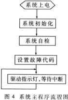 系統(tǒng)主程序包括系統(tǒng)初始化、系統(tǒng)自檢、故障代碼設(shè)置、指示燈驅(qū)動(dòng)等程序。流程如圖4所示。