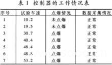 試驗(yàn)由臺(tái)車撞擊液壓緩沖器模擬汽車的碰撞波形,在清華大學(xué)汽車碰撞試驗(yàn)室的試驗(yàn)臺(tái)車上進(jìn)行。為了節(jié)約,先由點(diǎn)火管代替氣袋觀察控制系統(tǒng)的工作情況,試驗(yàn)車速由10km/h遞增至48km/h,車速低于20km/h時(shí)不應(yīng)點(diǎn)火,高于30km/h時(shí)應(yīng)該點(diǎn)火1。表1為試驗(yàn)時(shí)控制器的工作情況。