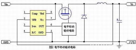 當(dāng)主電路的供電電壓不太高時(shí),可插入圖二所示的電平轉(zhuǎn)換驅(qū)動(dòng)電路。這種方法的優(yōu)點(diǎn)是成本較低,缺點(diǎn)一是當(dāng)輸入電壓Vin較高時(shí)不易處理好;二是電平移動(dòng)驅(qū)動(dòng)部分需要電荷泵供電,因此電路比較繁復(fù)。