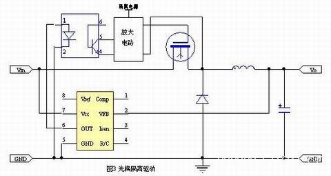 這是一種常用的方法,如圖三所示,優(yōu)點(diǎn)是電路比較成熟,但光耦次級(jí)需要隔離電源,由于光耦的速度不是很快,工作頻率不能太高,并可能降低電源的瞬態(tài)響應(yīng)速度。