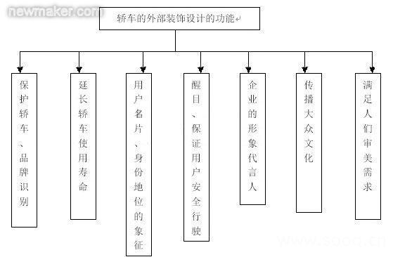 1.1 轎車外部裝飾的功能,見圖1.1。