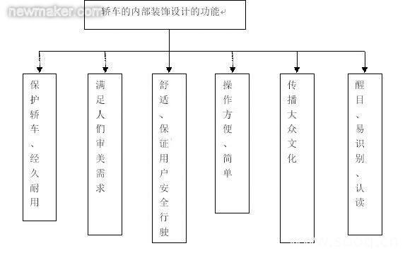 1.2 轎車內(nèi)部裝飾設計的功能,見圖1.2。