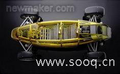 在2007年汽車博覽會上展出的RINSPEED MANSORY eXasis的車身蒙皮是用經(jīng)過多次改良的聚碳酸酯制成的,這種材料具有很多優(yōu)點,除去能夠在保證折射率的情況下革除100%的紫外線之外,它制成的車身部件,在強度及抗沖擊能力方面并不比一般的金屬部件差。當然,最重要的一點是它的輕量化,同等體積情況下,該材料的重量僅為鋼鐵部件的15%左右。