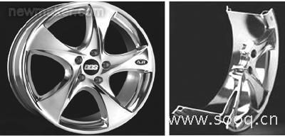 組合式窄輪輻鋁輪轂的簡要生產(chǎn)流程是:低壓鑄造輪輻、輪輞→熱處理→局部加工→旋壓→加工→涂裝→用螺栓組裝輪轂。