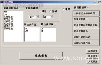 與信息的統(tǒng)計一樣,報表的生成條件主要也是時間段,該系統(tǒng)可以生成報交檢查統(tǒng)計、一次報交合格曲線圖、質(zhì)量信息統(tǒng)計、重點質(zhì)量問題整改措施、重點質(zhì)量信息、返修區(qū)缺陷統(tǒng)計和質(zhì)量缺陷排列圖等報表。