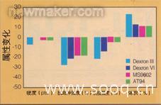 圖2、在70℃,燃油沉浸168 小時后性能變化情況