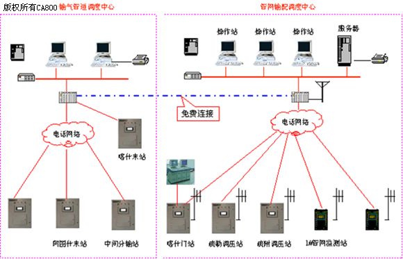 阿克氣田-喀什、阿圖什天然氣輸氣管道工程和城市管網(wǎng)輸配系統(tǒng)是集儀表、自動(dòng)化、計(jì)算機(jī)控制、數(shù)據(jù)網(wǎng)絡(luò)通信、系統(tǒng)集成和工程實(shí)施于一體的系統(tǒng)工程。 阿克氣田-喀什、阿圖什天然氣輸氣管道工程SCADA系統(tǒng)和城市管網(wǎng)SCADA系統(tǒng)均由其調(diào)度中心和現(xiàn)場(chǎng)RTU兩部分組成。調(diào)度中心設(shè)有工作站、打印機(jī)、UPS、通信控制器等設(shè)備。輸氣管道調(diào)度中心配置工作站2臺(tái),兩臺(tái)工作站互為備份;城市管網(wǎng)輸配調(diào)度中心配置1臺(tái)服務(wù)器和3臺(tái)工作站,組成一個(gè)100Base-T網(wǎng)絡(luò),可與燃?xì)夤竟芾碛?jì)算機(jī)網(wǎng)絡(luò)連接或Internet網(wǎng)絡(luò)連接;喀什門站設(shè)一個(gè)操作站,配置1臺(tái)工作站,操作站與調(diào)度中心之間通過有線方式通訊。 現(xiàn)場(chǎng)RTU作為數(shù)據(jù)監(jiān)控系統(tǒng)的核心,它一方面將管網(wǎng)控制中工藝數(shù)據(jù)采集后利用有線、無線方式送入監(jiān)控中心,另一方面它接收監(jiān)控中心或子監(jiān)控中心管理人員發(fā)出的指令或根據(jù)預(yù)先設(shè)定的程序?qū)ΜF(xiàn)場(chǎng)工藝設(shè)備進(jìn)行調(diào)控。 我們?cè)O(shè)計(jì)實(shí)施的天然氣管道SCADA系統(tǒng)根據(jù)站點(diǎn)分布情況,采用有線方式將數(shù)據(jù)傳送到輸氣管道調(diào)度中心;城市管網(wǎng)SCADA系統(tǒng)根據(jù)喀什市和疏勒縣、疏附縣的區(qū)域分布,采用有線、無線混合通訊方式,這樣既充分利用了無線數(shù)據(jù)通訊運(yùn)行成本低、通訊簡(jiǎn)便快捷,又可以滿足系統(tǒng)數(shù)據(jù)量較大,可靠性高的通訊需求。 該系統(tǒng)具有可靠性高,適用性強(qiáng)等優(yōu)點(diǎn),是一個(gè)完整的、經(jīng)濟(jì)的、可靠的系統(tǒng)。對(duì)整個(gè)天然氣輸配過程進(jìn)行集中監(jiān)控,提高了天然氣管網(wǎng)運(yùn)行的安全可靠性,為保護(hù)環(huán)境,改善工人操作條件,提高企業(yè)自動(dòng)化管理水平,樹立優(yōu)秀企業(yè)形象奠定了基礎(chǔ)。 系統(tǒng)結(jié)構(gòu)圖 ![]() 系統(tǒng)特點(diǎn): ·靈活的體系結(jié)構(gòu):系統(tǒng)可提供從20個(gè)到50000個(gè)集成點(diǎn),能準(zhǔn)確地選擇試用于不同任務(wù)的方案,配置最優(yōu)化的系統(tǒng)。 ·極高的可靠性:系統(tǒng)采用高性能RTU,其卓越的品質(zhì)保證系統(tǒng)可以在惡劣的環(huán)境下可靠工作;運(yùn)行于上位機(jī)的系統(tǒng)運(yùn)行軟件,保護(hù)功能齊全,操作人員只能進(jìn)入到各自允許的訪問層,進(jìn)行允許的操作,保證了系統(tǒng)操作上的安全可靠。 ·標(biāo)準(zhǔn)化、開放性:系統(tǒng)運(yùn)行軟件可運(yùn)行在WindowsNT、Win2000系統(tǒng),支持OPC、DDE和Active X,通過ODBC可以和多種關(guān)系型數(shù)據(jù)庫(kù)連接。 ·多樣化的通信手段:可支持無線、有線等多種通信方式。 ·靈活的組網(wǎng)方式:可以采用調(diào)度中心——現(xiàn)場(chǎng)RTU的單級(jí)方式,也可采用調(diào)度中心——中繼站——現(xiàn)場(chǎng)RTU的多級(jí)方式,視具體要求靈活應(yīng)用;RTU采用分布式體系結(jié)構(gòu),配置靈活,易于擴(kuò)展。 ·友好的人機(jī)界面:現(xiàn)場(chǎng)RTU采用LCD顯示屏顯示的測(cè)控參數(shù)、調(diào)度中心監(jiān)控機(jī)采用圖形化人機(jī)界面,操作更直觀、簡(jiǎn)便。 ·與第三方系統(tǒng)集成:系統(tǒng)采用標(biāo)準(zhǔn)以太網(wǎng),全面支持TCP/IP協(xié)議,可方便聯(lián)入Internet,支持Modbus、HART協(xié)議的設(shè)備均可以方便地接入本系統(tǒng)。 ·安裝、維護(hù)方便:現(xiàn)場(chǎng)RTU采用標(biāo)準(zhǔn)的壁掛式機(jī)箱,RTU內(nèi)部是標(biāo)準(zhǔn)的端子接口模塊,導(dǎo)軌式安裝,軟硬件高度集成,標(biāo)準(zhǔn)化的設(shè)計(jì)使安裝和維護(hù)十分方便。 系統(tǒng)功能: ·遙測(cè):根據(jù)系統(tǒng)設(shè)定參數(shù),遙測(cè)監(jiān)測(cè)數(shù)據(jù),形成系統(tǒng)運(yùn)行歷史數(shù)據(jù)庫(kù)。 ·遙控:根據(jù)現(xiàn)場(chǎng)工藝要求將采集數(shù)據(jù)經(jīng)過處理判斷,通過安裝于現(xiàn)場(chǎng)的監(jiān)控RTU對(duì)現(xiàn)場(chǎng)設(shè)備進(jìn)行控制。 ·顯示:具有實(shí)時(shí)數(shù)據(jù)、系統(tǒng)狀態(tài)、實(shí)時(shí)曲線圖、歷史趨勢(shì)曲線圖、工藝流程顯示。 ·報(bào)警指示:監(jiān)測(cè)數(shù)據(jù)量上、下限報(bào)警,有人闖入報(bào)警、啟停機(jī)報(bào)警等。 ·系統(tǒng)參數(shù)輸入及組態(tài):輸入系統(tǒng)參數(shù),如巡檢周期、控制參數(shù)、報(bào)警限、計(jì)算公式、系統(tǒng)時(shí)間等,并對(duì)這些參數(shù)進(jìn)行組態(tài),以形成完整的系統(tǒng)操作、控制、統(tǒng)計(jì)、顯示、打印參數(shù)數(shù)據(jù)庫(kù)。 ·自動(dòng)巡檢:調(diào)度中心自動(dòng)巡檢監(jiān)控RTU工作情況。 ·手動(dòng)采集:可以人為手動(dòng)巡檢監(jiān)控RTU,得到全部或部分監(jiān)控?cái)?shù)據(jù)。 ·歷史數(shù)據(jù)打?。簱?jù)系統(tǒng)設(shè)定參數(shù),自動(dòng)打印系統(tǒng)遙測(cè)、遙控等運(yùn)行狀態(tài)數(shù)據(jù)。 ·數(shù)據(jù)統(tǒng)計(jì):實(shí)現(xiàn)流量計(j