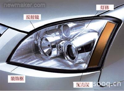 汽車前大燈是由燈座、燈體、反射鏡、裝飾圈和配光鏡組成的(如圖1所示),它作為兼具功能的外飾件已越來越成為汽車個性化設(shè)計中的一部分。為使汽車車燈更加美觀時尚、環(huán)保節(jié)能、價廉耐用及滿足功能要求,塑料材料供應商為不同車燈組件開發(fā)了多種具有不同特性的工程塑料。這些材料的特性及應用見表1 。