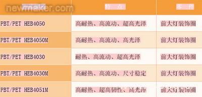 表2 錦湖日麗PBT/PET車燈用料的牌號及特點