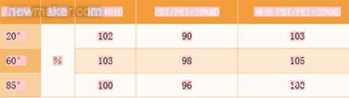 通過實驗比較可以看出,免噴涂車燈用材料SUNNY HEB4010與漆面PBT/PET的光澤度相差無幾;與無漆面PBT/PET相比,加工性得到較大改善;與耐熱PC相比,沖擊性能相當,但其耐熱性能、加工性能具有較大優(yōu)勢。