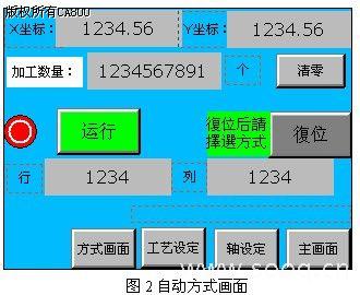 ?。?)觸摸屏畫面設(shè)計(jì):在觸摸屏畫面里,此次采取標(biāo)準(zhǔn)CNC的理念,有三種控制方