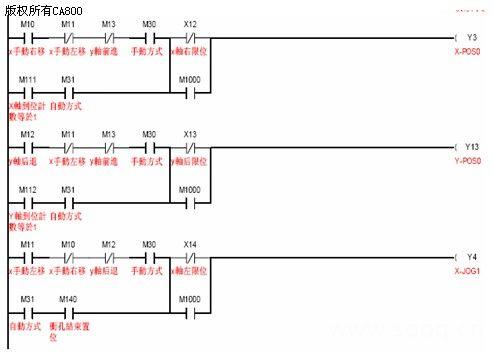 動作執(zhí)行及邏輯判斷PLC程序部分梯形圖程序如下: