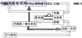 燃料電池發(fā)動(dòng)機(jī)系統(tǒng)的水和熱的管理是相輔相成的,按照不同的回路,對電池反應(yīng)循環(huán)內(nèi)水的管理和對電池需要排出熱的管理加以了區(qū)分,希望對燃料電池動(dòng)力系統(tǒng)的分析和計(jì)算提供一個(gè)新穎而有效的方法。