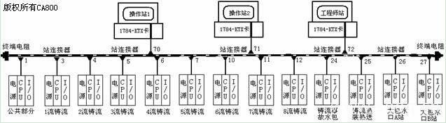 控制站由連鑄公共部分控制站、1流至8流小方坯連鑄鑄流共8個控制站、連鑄事故水包控制站、連鑄一切二切控制站、鑄流熱裝熱送控制站、連鑄大包水口A站、大包水口B站控制站等十四個控制站組成。